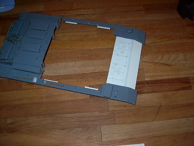 Einige Kleinteile sind auch schon angebracht wie der Tarnscheinwerfer , der Unterlegsklotz