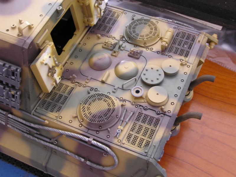 Nur ist der vordere Teil (die Ebene mit den beiden Luken im Original um einige Zentimeter tiefer als als beim Königstiger. Dies war wegen dem 12.8cm Kanone notwendig.