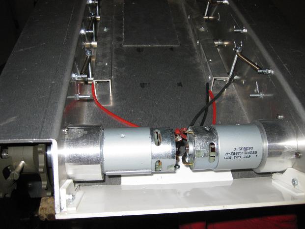 hier ein Blick auf die Motoren mit den Planetengetrieben und die zwar "rudimentäre" aber gut funktionierende Aufhängung.... alles Teile aus dem Baumarkt....