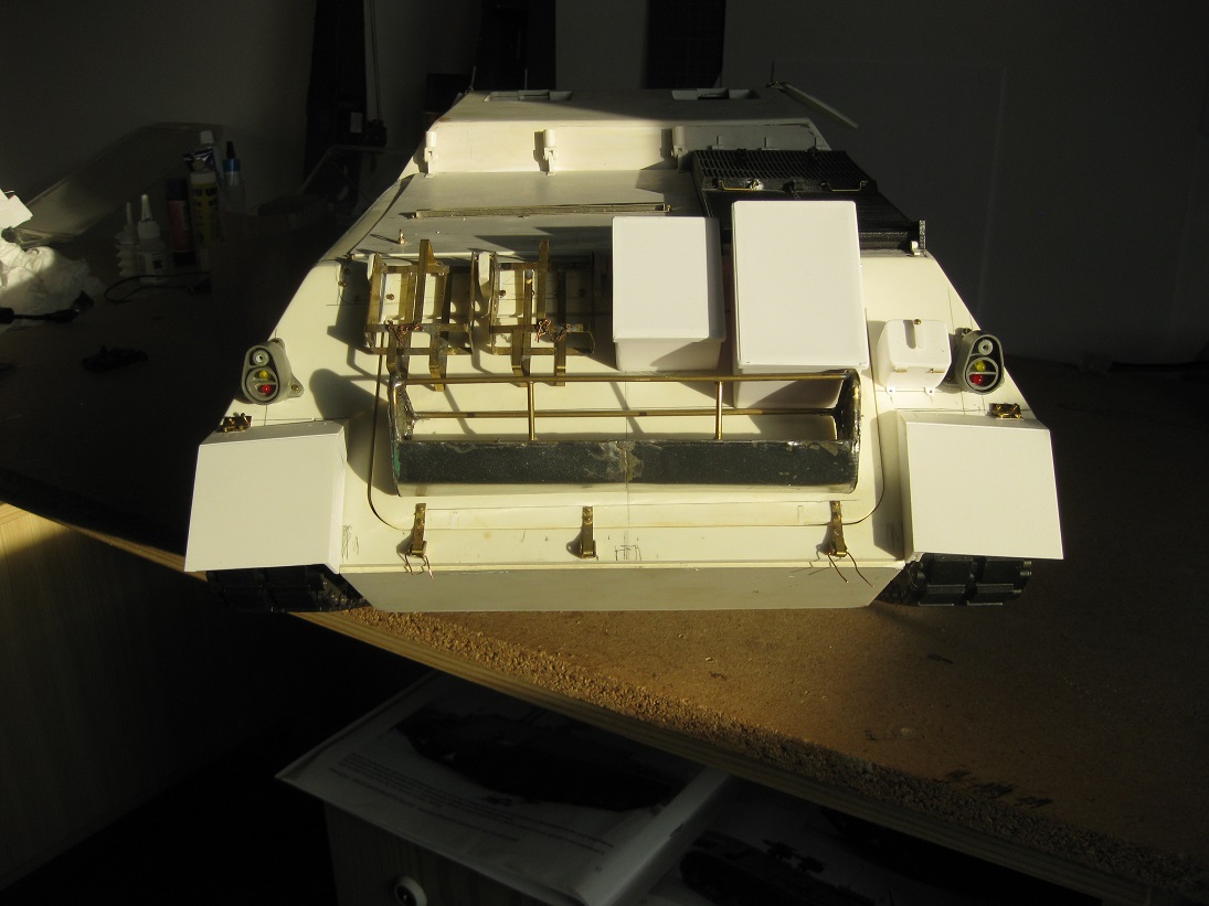 Hier soll es auch weitergehen. Zunächst habe ich mit dem Heck weitergemacht. Dies ist zwar nicht der Schwermaschinenbau a la Chris aber ausreichend stabil.