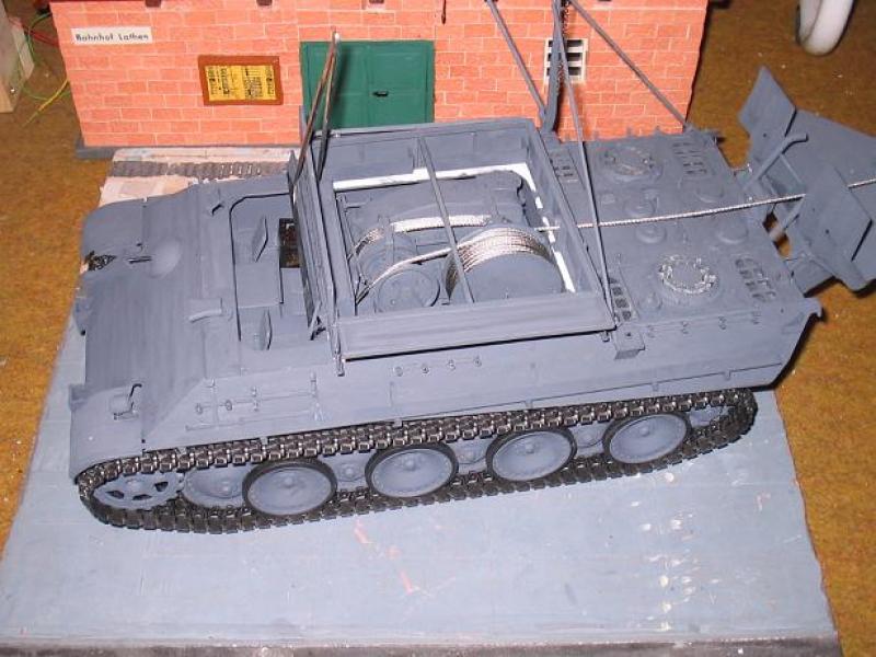 Mir gefällt Dein Bergepanther. Da ich ja das Originalmodell gebaut habe, weiß ich Deine Umbauarbeiten zu würdigen. Hab mich noch nicht mal getraut, die Luken aufzuflexen und gängig zu machen (die Kommandantenluke ist irgendwie auch zu, weil wohl Farbe und Lack reingelaufen sind. Hoffentlich kriege ich die wieder auf, hab nämlich ne Figur bestellt).