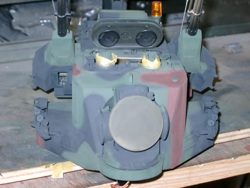 Das mit dem "alten" Standardfarbton könnte hinkommen. Wahrscheinlich ist die Abdeckung der Radarantenne aus faserverstärktem Kunststoff. Dieser wurde bei der Herstellung entsprechend dem restlichen Farbton des Fahrzeuges durchgefärbt. Nun änderte sich die Farbe des Panzers, wärend die Kunststoffteile noch immer denselben Farbton haben. Sie dürfen ja auch nicht lackiert werden. Vermutlich sind davon noch hunderte Stück als Ersatzteile auf Lager und es wäre unwirtschaftlich, neue in angepasster Farbe herzustellen.