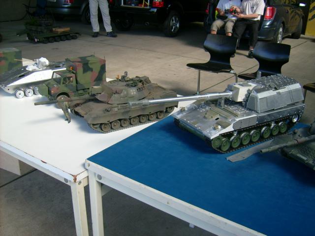 Auf dem ganzen Areal waren überall Stützpunkte zum gucken und Selbstfahren oder Bedienen eingerichtet .