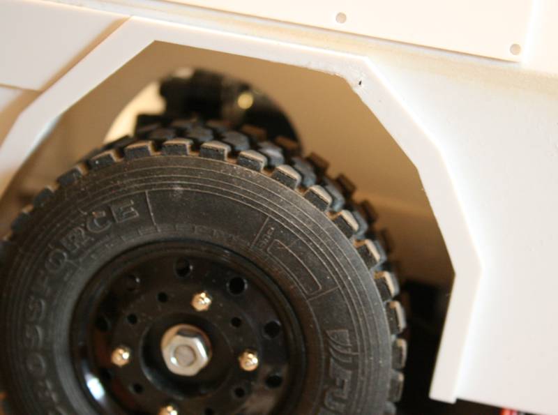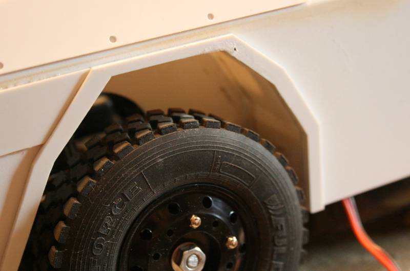 Die Reifen und Felgen sind von Veroma. Die sind zwar ca. 3mm zu groß, aber das fällt