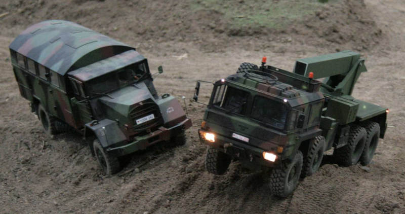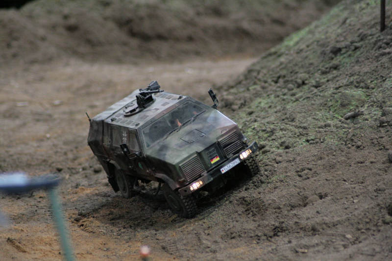 Günters Kodiak und die ganzen Baufahrzeuge brachten auch eine gute Abwechslung ins Panzergetümmel. Hier wurde der Schutzwahl der Schießbahn nach und nach erhöht.