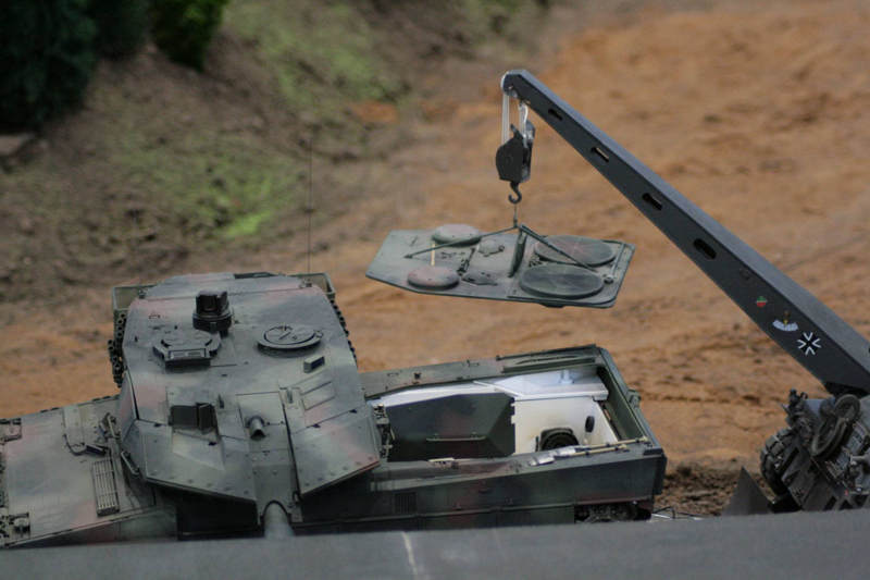Peter hatte nen nagelneuen Leo2A5 in 1:10 dabei, sehr schön jetzt mit neuer Wanne und einem vorbildgerechten Fahrwerk.