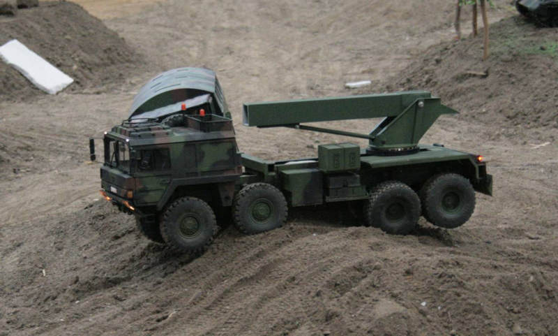 Roberts autonomes Gepardsystem sicherte den GANZEN TAG den Luftraum über unserem Übungsplatz. Funktions- und Bewegungsablauf entsprechen 100% dem Original. Es ist echt ne Show, wie der Gepard das imaginäre Ziel verfolgt und bekämpft....und dann wie beim echten in die Neutralstellung zurück fährt.