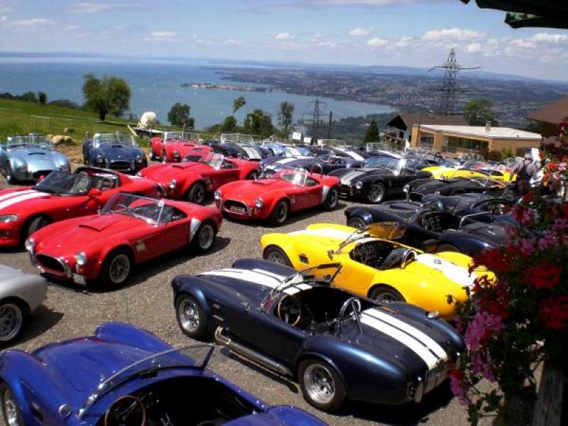 Hier mal ein Bild mit einem Teil der 73 Cobras auf der füruns extra gesperrten Terasse eines Lokals direkt über Bregenz mit einem unbezahlbaren Blick auf den See...