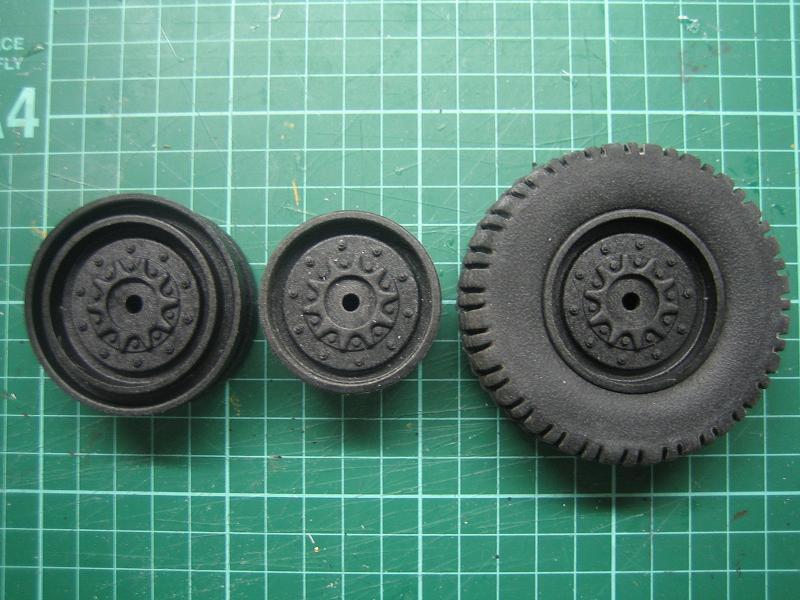 Felgen und Reifen sind nicht so der Hit. Mal abgesehen davon, das diese optisch nicht gerade dolle sind wirst Du mit den Pantherfelgen ein Problem bekommen. Wenn der LARS wirklich 1:16 ist dann sollte der so um die 156 - 160 mm breit sein, Pantherachsen sind mit Felgen aber 180mm breit. Lässt sich die HA noch relativ leicht ändern isses bei der VA nicht machbar. Ich gehe mal davon aus das Dein MAN Allrda bekommen soll....
