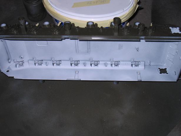.....einfach weil es dem Original entspricht.... und wie im Original das "dunkel" des Innenraumes etwas aufhellt... sonst gibt es keinen Grund.... ich häng noch ein Bild an von einer Wanne VOR der Lackierung..es ist gut zu sehen, das ich die Stützrollen und Dämpfer schon dran hab, die polierten Dämpferstangen sind abgeklebt.