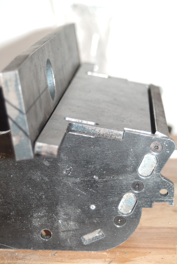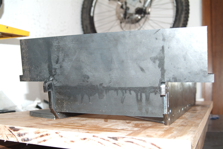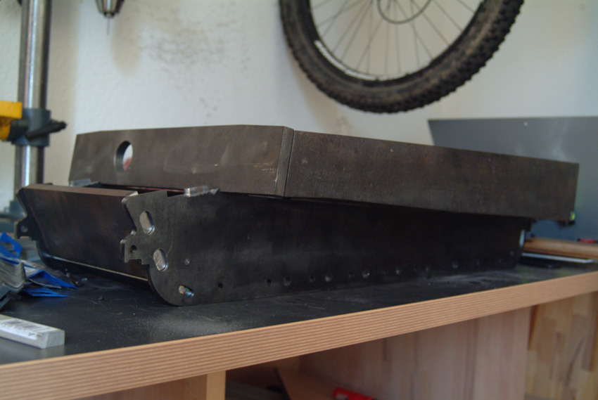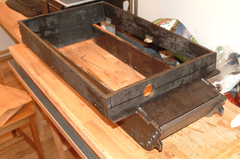 Nun, wie man bereits sehen kann ist die Frontplatte angezeichnet, aber statt 12mm Stahl zu Schneiden habe ich mich dafür entschieden das gute Stück gegen Alu zu ersetzen.