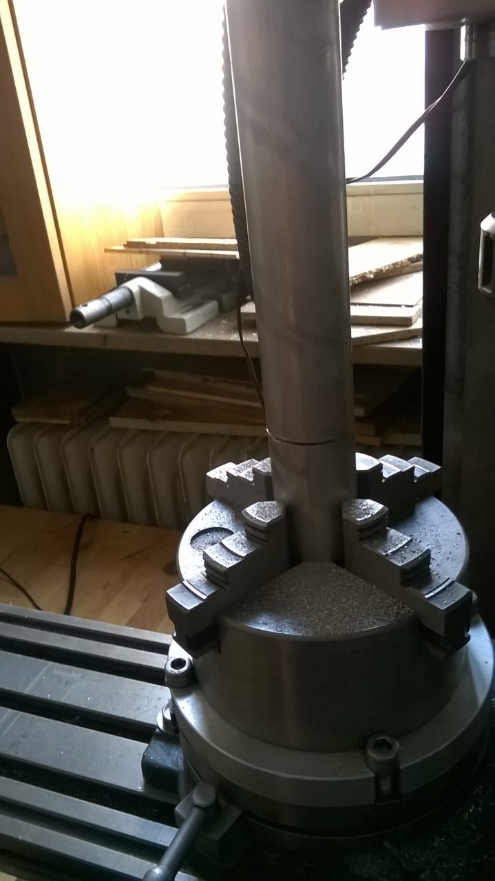 Ausgangsmaterial ist eine 35mm Aluwelle...da musste ich erst mal ein Stückchen von absägen..nach alter Manier mit der Handsäge