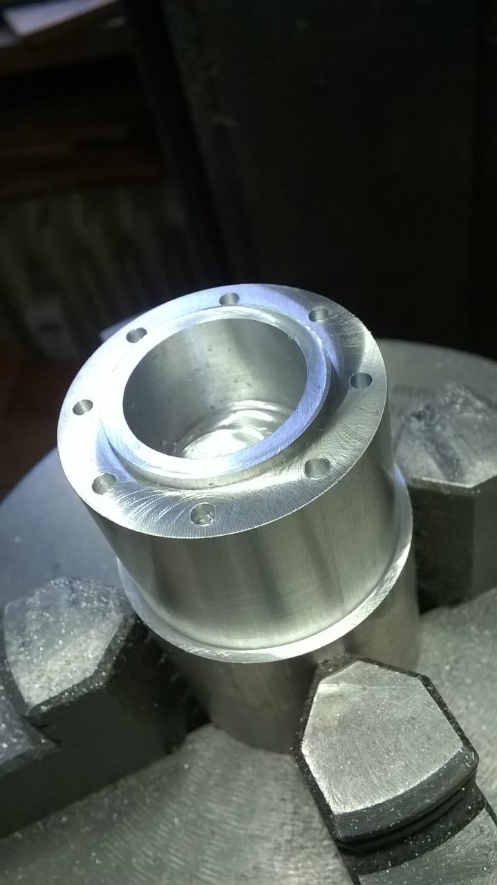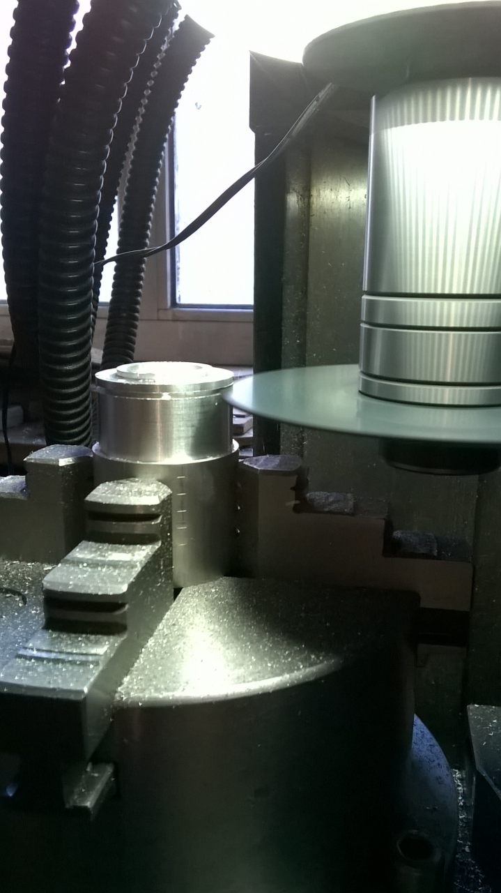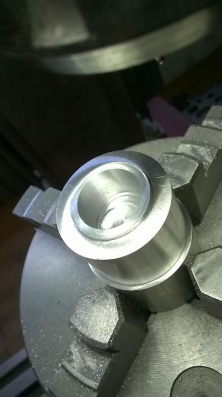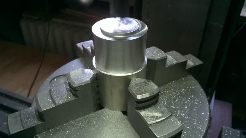 Das Stückchen Rundmaterial wurde dann auf 32,5mm gebracht und schon mal die die kleine Stufe angebracht.
