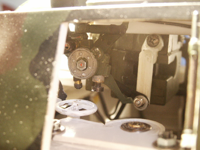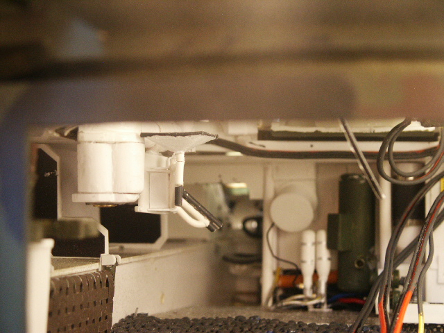 Im vorderen Bereich wurden die Elemente der Heizung,Lüftung mit den Pumpen und Rohren nachgebildet. Die Spiralschläuche bestehen aus Kabel das um gebogenen Poli-Rundstäbe wurde und dann mit Dark Rubber eingefärbt wurde und die Spitzen sind mit Alu-Farbe im Dry-brush verfahren nachbehandelt.