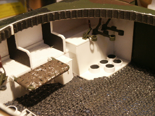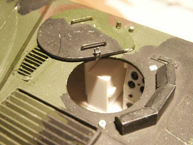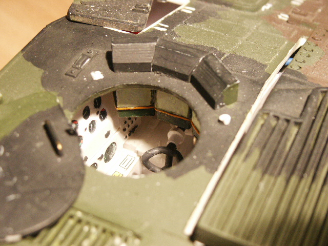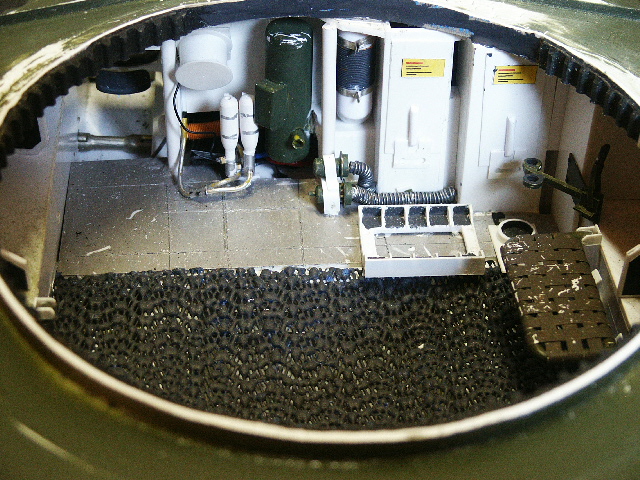 Die Auskleidung des Kampfraumes besteht aus einem Stück einer Antirutschmatte für´s Auto und wurde mit Vallejo Dark Rubber eingefärbt.