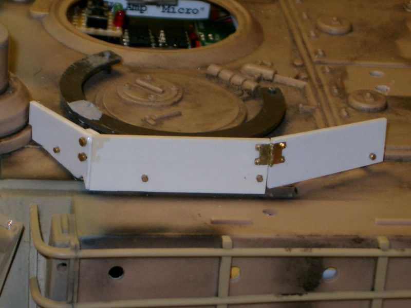 Danach habe ich mich am Schutz für den Ladeschützen ausgetobt. Hier nur provisorisch fürs Bild aufgelegt, zum lackieren kommt er wieder runter. Da er angeschaubt wird, ist das kein echtes Problem.