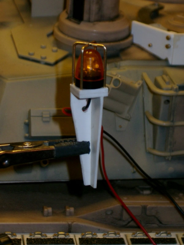 Und als Finale des Tages die Warnleuchte, die vorne am linken Turmstaukasten ihren Platz finden wird (das Loch für die Kabeldurchführung kann man da im Hintergund schon sehen). Über Sinn und Unsinn im Kriegsgebiet kann man streiten, aber ich wollte sie eben haben. Basta.