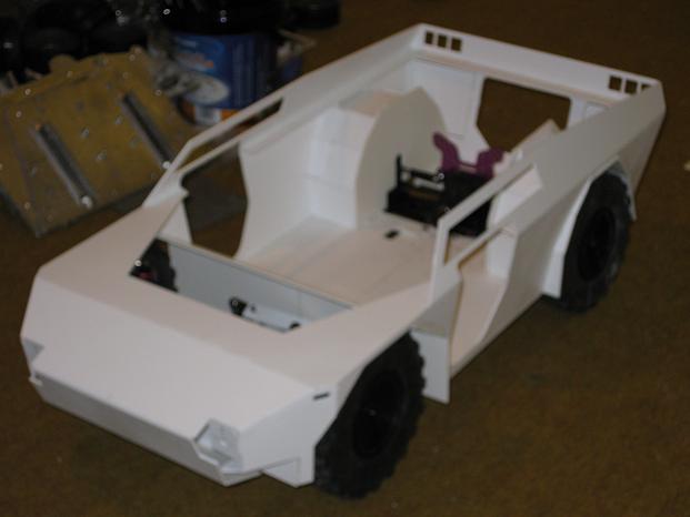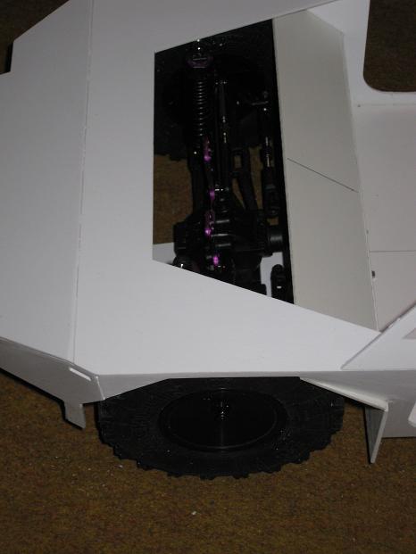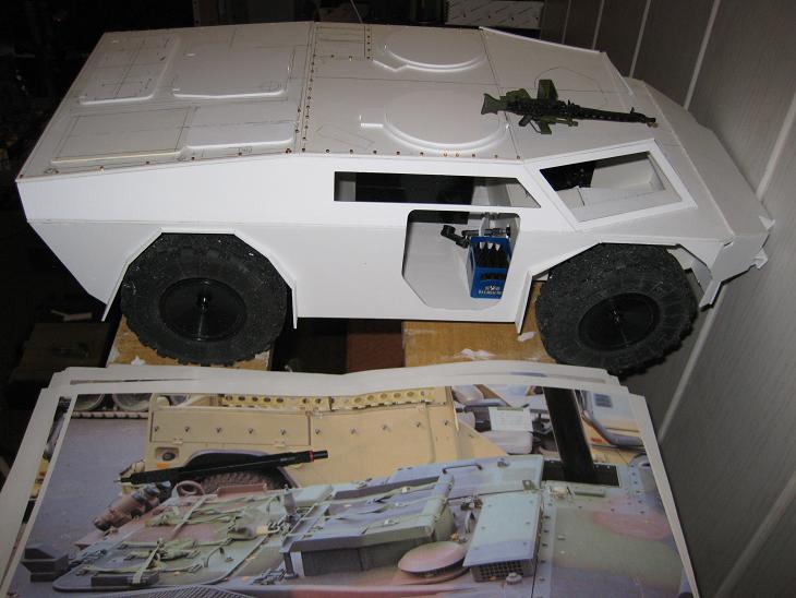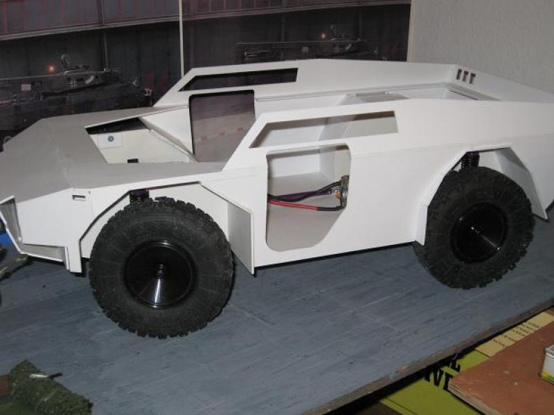 Original und Modell haben nur bedingt miteinander zu tun. Das sieht man auch. Ziel ist ein Funktionsmodell mit guten Fahreigenschaften und Licht wie am Original. Ein Radfahrzeug ist einfach schneller mal zum "Sapß haben" einsetzbar als ein Kettenfahrzeug. Und sich hiermit durch Sand oder Schlamm zu wühlen wird bestimmt Spaß machen!