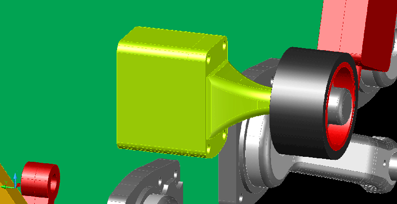 Links sieht man den Platzhalter rechts das Schnittmodell des Stossdämpfers der nun zum Einsatz kommen soll. Die Kanten werden alle noch gerundet usw, aber ich denke, man kann schon erkennen was es werden soll. Ob der Federweg so ausreicht wag ich zu bezweifeln, aber jetzt fräs ich erstmal ein Teil und dann schaumermal. :)