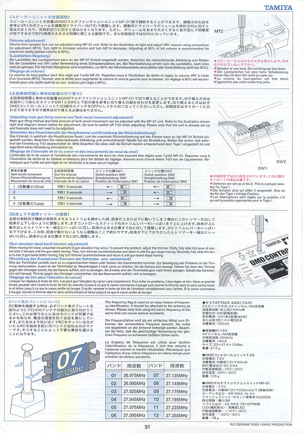 Du kannst übrigens beim Tamiya Tiger 1 den Rückstoß und den Intervall einstellen !!!das heißt wie stark der Rückstoß sein soll und die Feuergeschwindigkeit ,steht auch in der Anleitung auf Seite 31 .