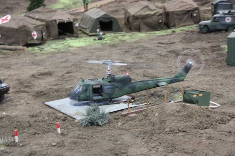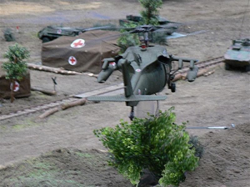 Hier mal die fertige UH-60 im "Anflug" auf unser Feldlazarett , inclusive Rotorantrieb.