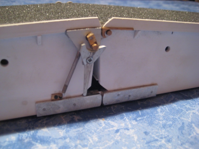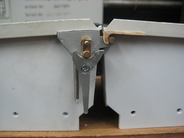 Dabei wird der Umlenkhebel von einem gefederten Hebel (weiß leider nicht wie der heist     ), der am Verlegearm angebracht ist, abgefangen, während die Brücke noch ein Stück weiter fährt. Was ich mich gefragt habe ist wie weit die Brücke noch fährt, sobald der Umlenkhebel mit der Entriegelung beginnt, und welchen Winkel er in der Endposition der Entriegelung einnimmt.