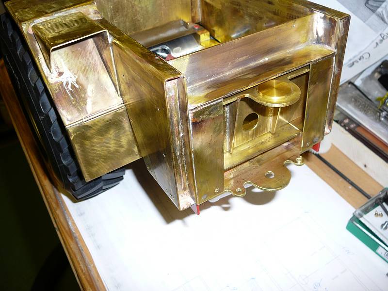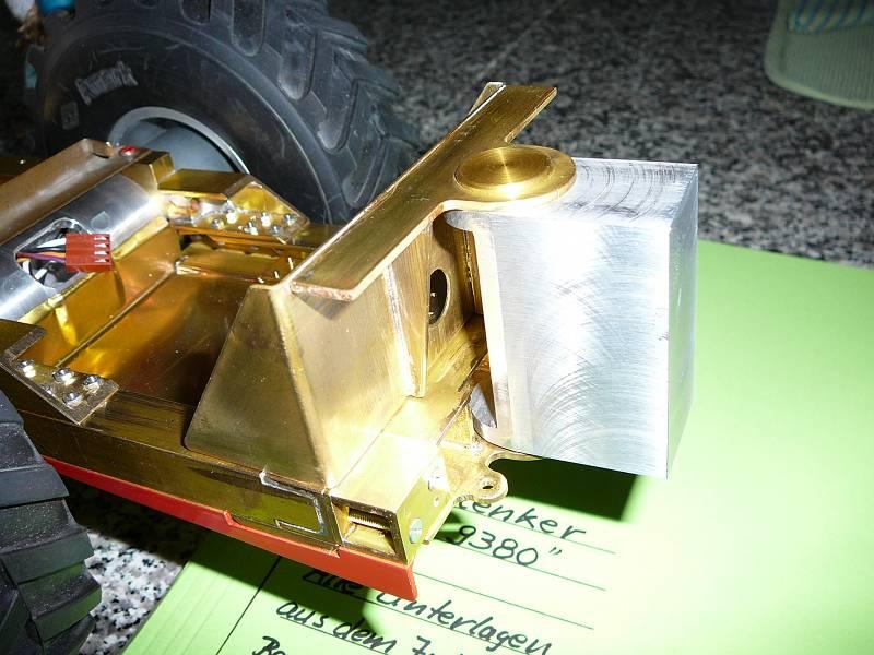 Zunächst wurden auch am Vorderwagen die Gegenstücke des Knickgelenkes aus Messing hergestellt und direkt mit dem Rahmen verschraubt.