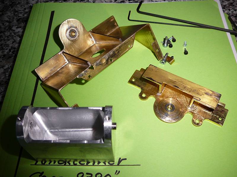 Als fertiges Bauelement sieht es dann so aus. Der Getriebemotor wurde auf einer sehr viel tieferen Ebene eingebaut, weil er sich - entgegen der früheren Lösung - unter dem Gehäuse des Hinterwagens bewegen können muß, ohne anzustoßen. -- Gruß Hartmut