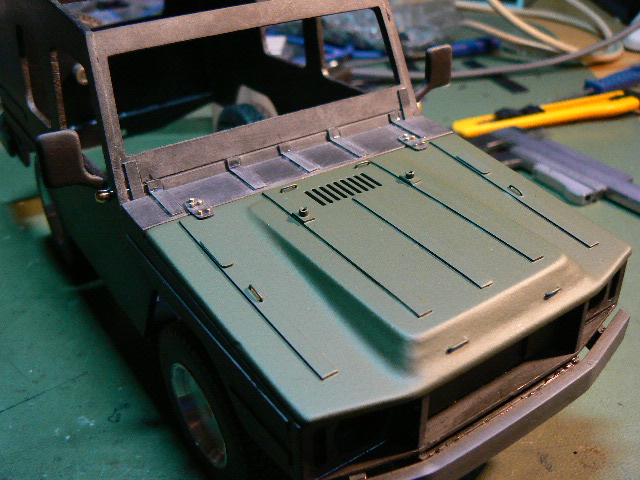 absolut problematisch waren die milchigen Dämpfe des Sekundenklebers. Die versauen teilweise das Material und speziell die klaren Fenster. Aber nach etwaigen retuschen wirds wohl gehn.... Türgriffe kommen auch noch.