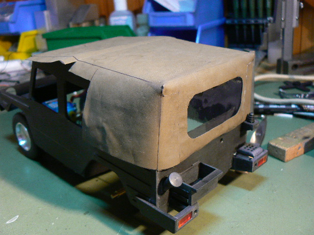 Die Fenster beim Verdeck sind aus flexiblem klaren Kunststoff. Am 31.12.2009 so gegen 12:00 kam mir die Idee eine Sylvesterraketenpackung zu vergewaltigen. Die ziert jetzt das Heckfenster.