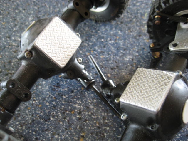 Wir (Vattern & Ich) haben das anders gemacht. Wir hatten die einzelnen Achsgehäuse auf ein Holzbrettchen geschraubt. Und diese dann unter dem voreingestellten Proxxon Fräsständer durchgeschoben, dadurch wird ein Achsgehäuse wie das Andere. Danach kamen neue Deckel aus 1mm Messing drauf, mit 2k-Kleber verklebt. Der Vorteil, wenn die Achsgehäuse einzeln bearbeitet werden ist, dass man auch innen noch eine schöne Klebernaht hinkriegt die sicher hält. Danach hatten wir die Achsen wieder zusammengesetzt mit einer ordentlichen Füllung Fett.