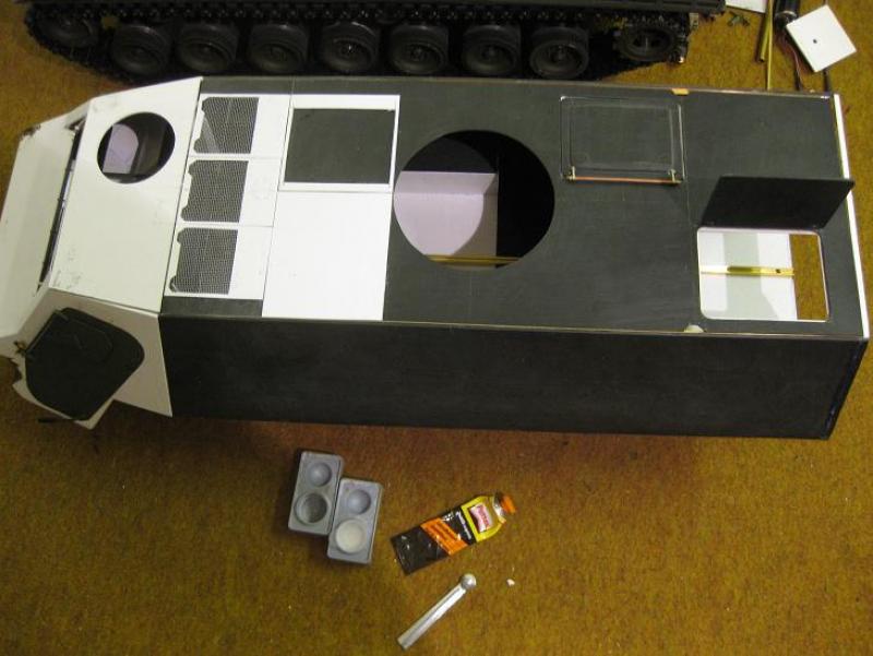 Michael, das komische für mich in 1:10 ist, das jedes Teil, zum Beispiel jetzt die Abdeckungen der Lüftungsschächte (eigentlich) bis in die letzte Schraube exakt wiedergegeben sein sollte. Dazu kommt, das größere Teile (so ab 10- 15cm.....) viel exakter winklig sein müssen als in 1:16. Da hab ich schon viel in die Tonne gehauen. Ausserdem ist das Mat. dicker, was die Bearbeitung auch nicht leichter macht.