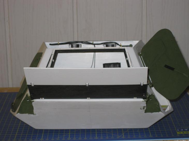 Endlich! Das Schwallbrett (speziell die obere, anklappbare Hälfte) "steht"! Das mech. anbinden zum aufklappen ist unproblematisch. Optisch sagt es mir nun auch einigermaßen zu.
