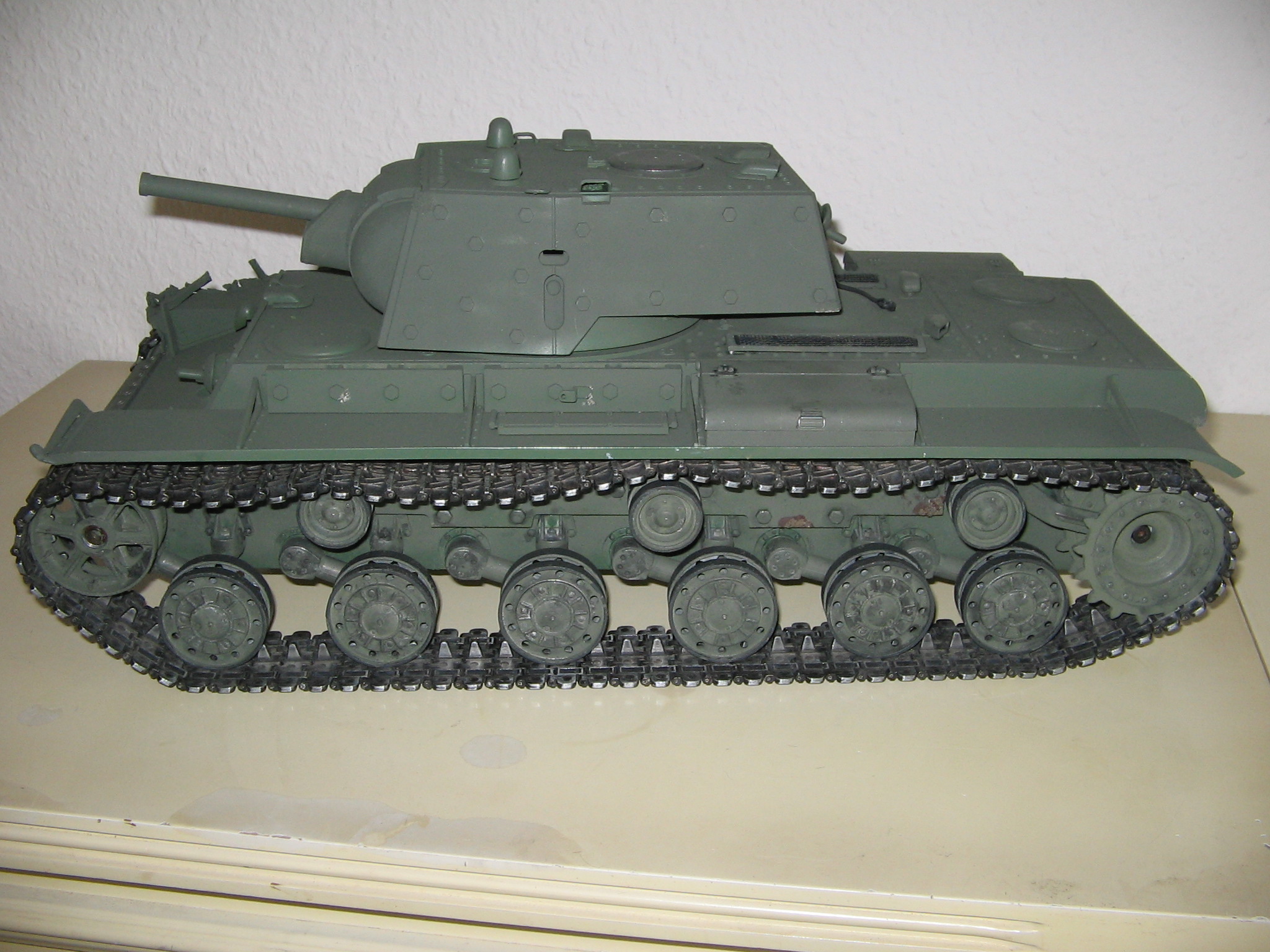 Gestern Abend wurde ich mit dem Airbruschen fertig, so daß mein Panzerchen doch ganz anständig ausschaut, doch das Altern bekomme ich bis morgen nicht mehr hin und so werde ich meinen KV-1 halbfertig mitbringen. Funktionen wurden überprüft und alles klappt soweit.