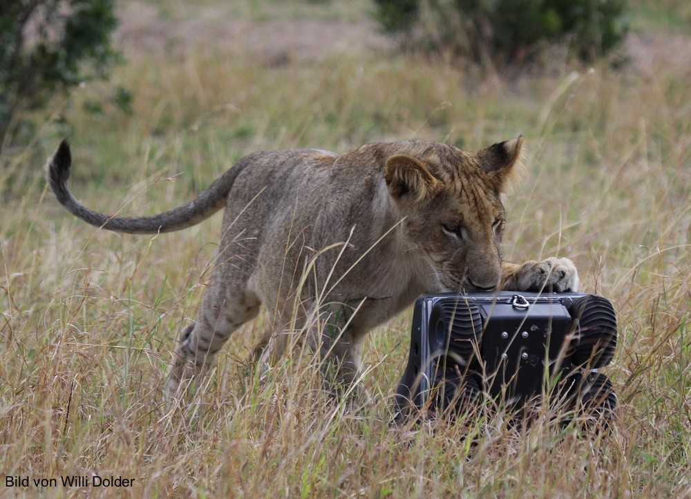 Nachdem sich dann rausstellte, wie oben zu sehen, dass Löwen gegen einen Ultraschall-Hundervertreiber immun sind (im Gegensatz zu Hauskatzen), habe ich bei den wirklich großen Großkatzen das Ding dann nicht mehr eingesetzt, da waren aber auch fast immer andere Touri-Autos in der Nähe, so dass ein vorsichtiges Annähern und Antesten nicht möglich war. Ich hätte ja in 50 Meter Entfernung aussteigen müssen und das Ding startklar machen.