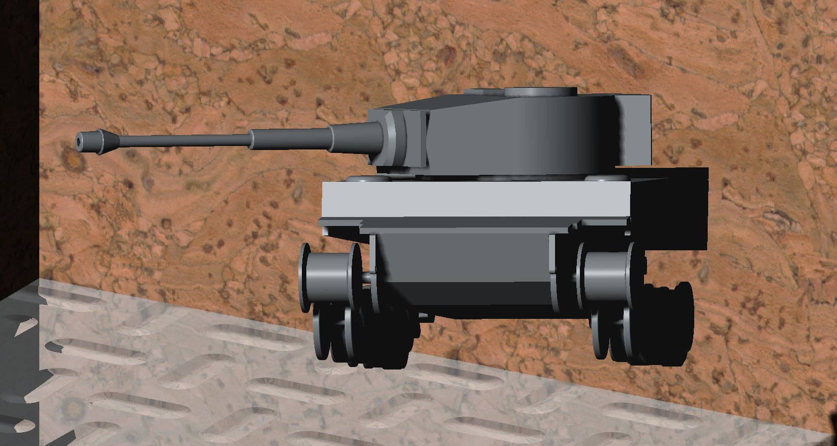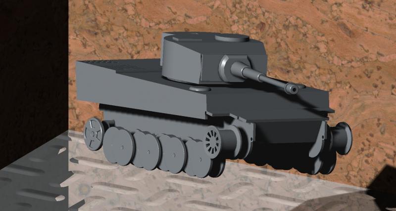 die Stufe die Du meinst ist von mir ausgeklinkt , und zwar um die Stärke des Wannenbodens . Sprich wenn der dran ist dann ist die Kante unten wieder bündig . Und das Heckblech das Du meinst ist das Deckblech vorn . Ich schmeiss gleich mal 3 Bilder vom 3D Modell rein , dann kann man sehen wie es ausschaut wenn die Einzelteile zusammengebaut sind . Als Vorlage hatte ich nur ein Bausatzmodell 1:72 . Leider kann man davon nur ungefähre Maße abgreifen aber für Wanne Turm & Co sollte das erstmal reichen . Ich werd nochmal losziehen und mir nen 1:16 Bausatz besorgen für die ganzen genauen Maße wie Achsbohrungen ect denn da hapert es noch ein wenig .