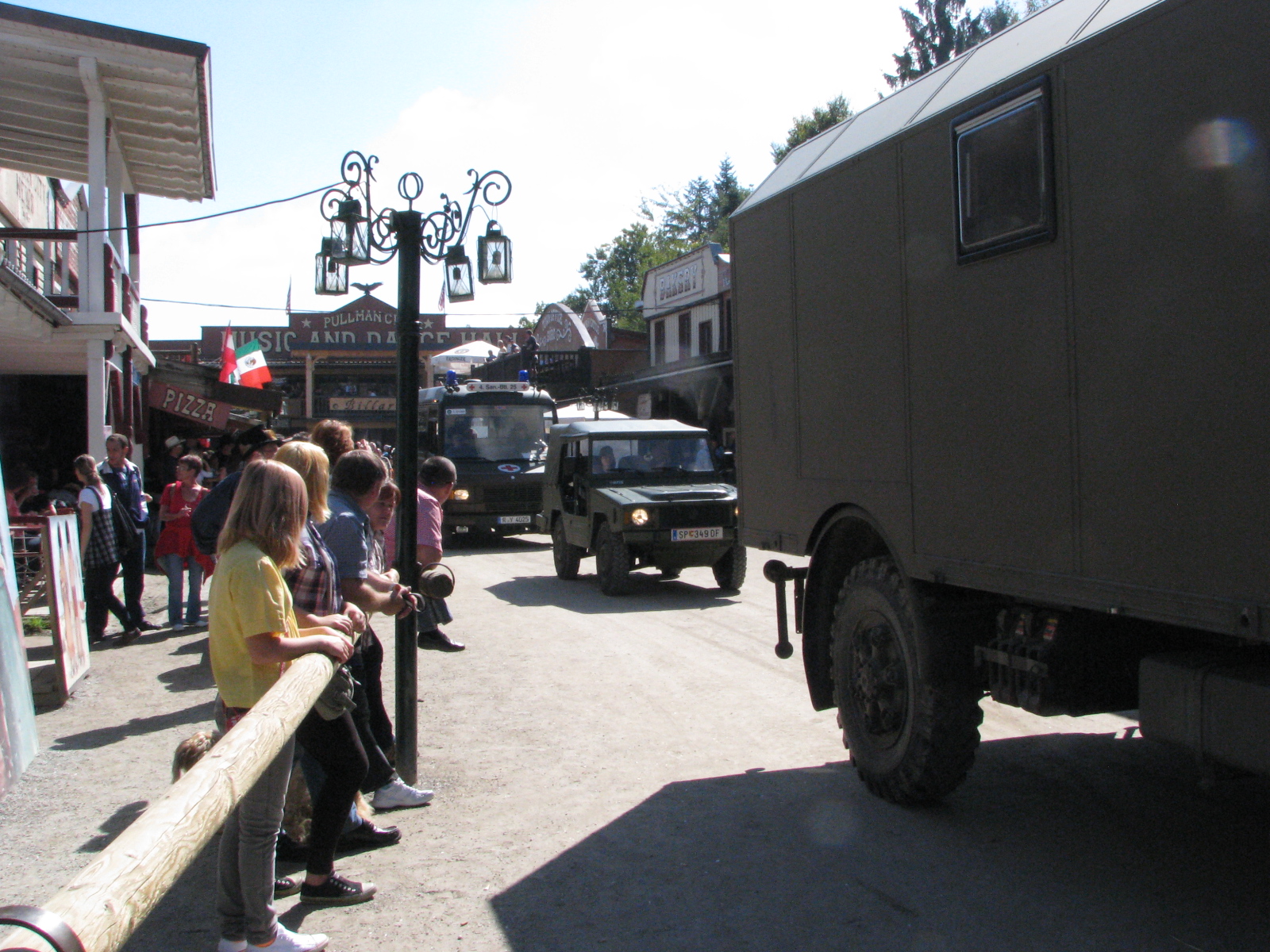 Desweiteren wird alljährlich auch eine Fahrzeugparade mit Fahrzeugvorstellung in der Westernstadt durchgeführt und durch eine gute Moderation geleitet. Natürlich waren auch viele Zuschauer mit von der Partie....