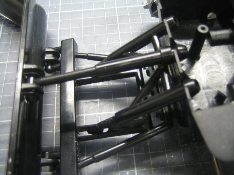 Wenn das so bleibt, kannst du mit dem Ersatzlenker nur die Schaufel kippen - es fehlt noch das Parallelogramm für das senkrechte/parallele Heben der Schaufel . Das machen sonst eigentlich die schräggestellten, ( toten ), schwarzen Zylinder-Attrappen zusammen mit dem Ersatzlenker. Da mußt du also noch weiter dran rummachen.