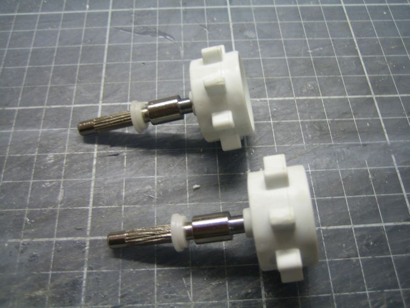 uuups, die Wellen sind ja viel zu dick - da passen die Dickie-Antriebsräder nicht drauf ! ?