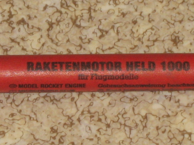 Und das ist ein Raketenmotor Held 1000.Hat einen Durchmesser von 15mm und eine Länge von 95mm.