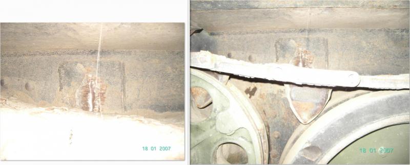 beim original T34 sind die Kettenbolzen lose von innen nach außen eingeschlagen, also Bolzenkopf auf der Innenseite, im oberen Kettenlauf ist im Bereich des Antriebsrades ein Abstreifblech montiert, welches jeden Kettenbolzen wieder an seinen Platz schieb, falls es wandern sollte.