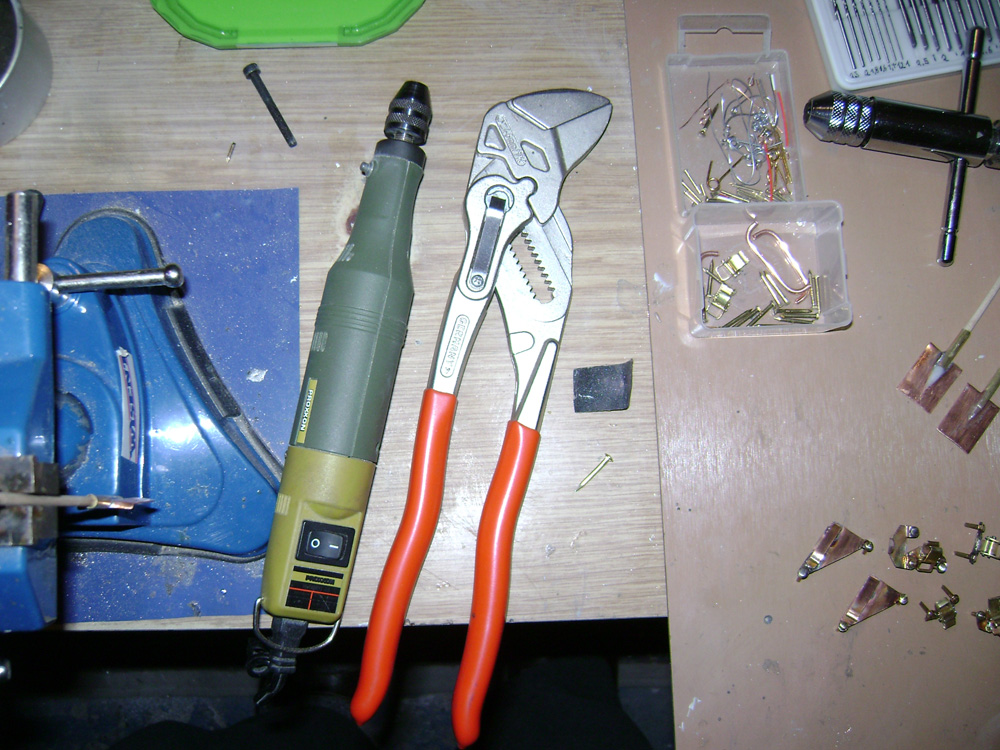 So, da hätten wir das Werkzeug, ihr braucht nicht alles zu haben, ein Proxxon oder Dremel ist für die Optik vom Kopf, ist hilfreich, aber nicht unbedingt von nöten.
