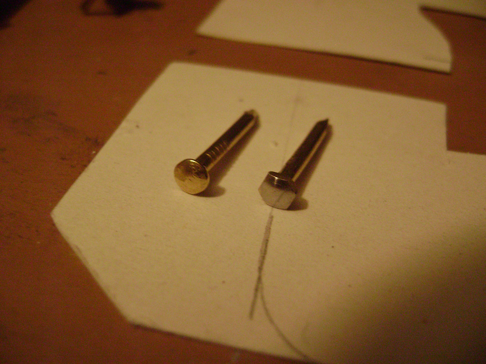In der Schrauben Abteilung ist mir was aufgefallen, Nägel aus Messing mit halbrunden Kopf, in verschieden Durchmessern..