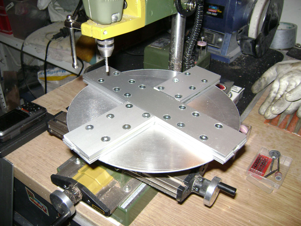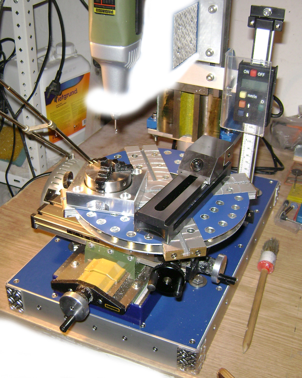 Aber man wird ja schlauer, habe mir aus Luxemburg (Ist ja nicht weit von mir) einen Drehtisch mit dem Durchmesser 75 mm besorgt, dabei im Laden auch ein wenig rumgestöbert und mir noch ein wenig Werkzeug und Material gekauft.
