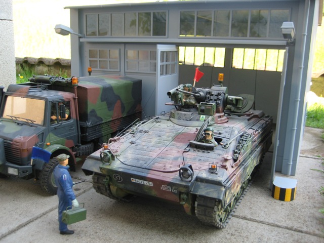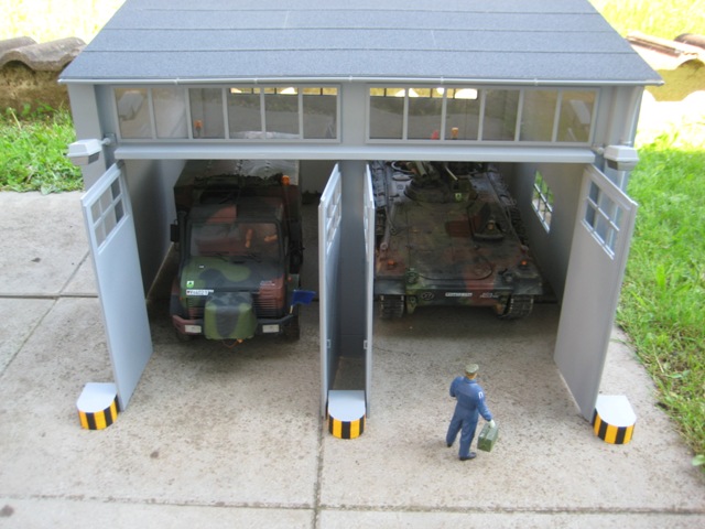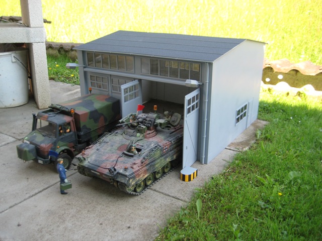 Thema: Fahrzeughalle mit Spitzdach für diverse Bundeswehrfahrzeuge in 1:16 |