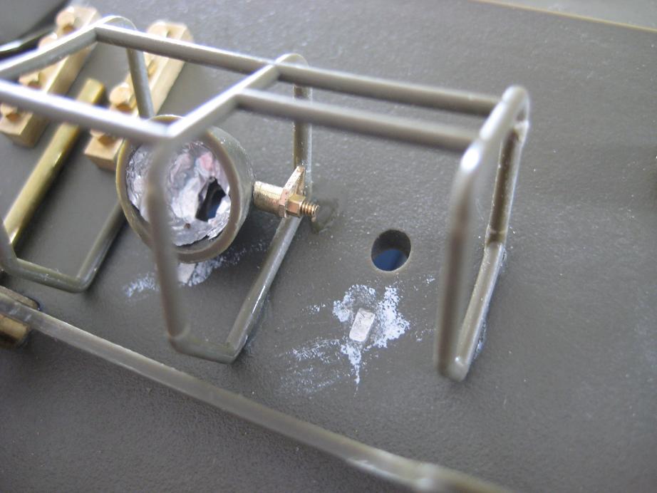 Ich habe auch schon die Tanks vorgebohrt. Dort kommen die Kraftstoffleitungen rein. Ich hätte sie sicher auch nur aufkleben können, denke aber, dass sie so auch im "Manöver" mehr belastet werden können.