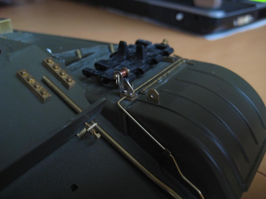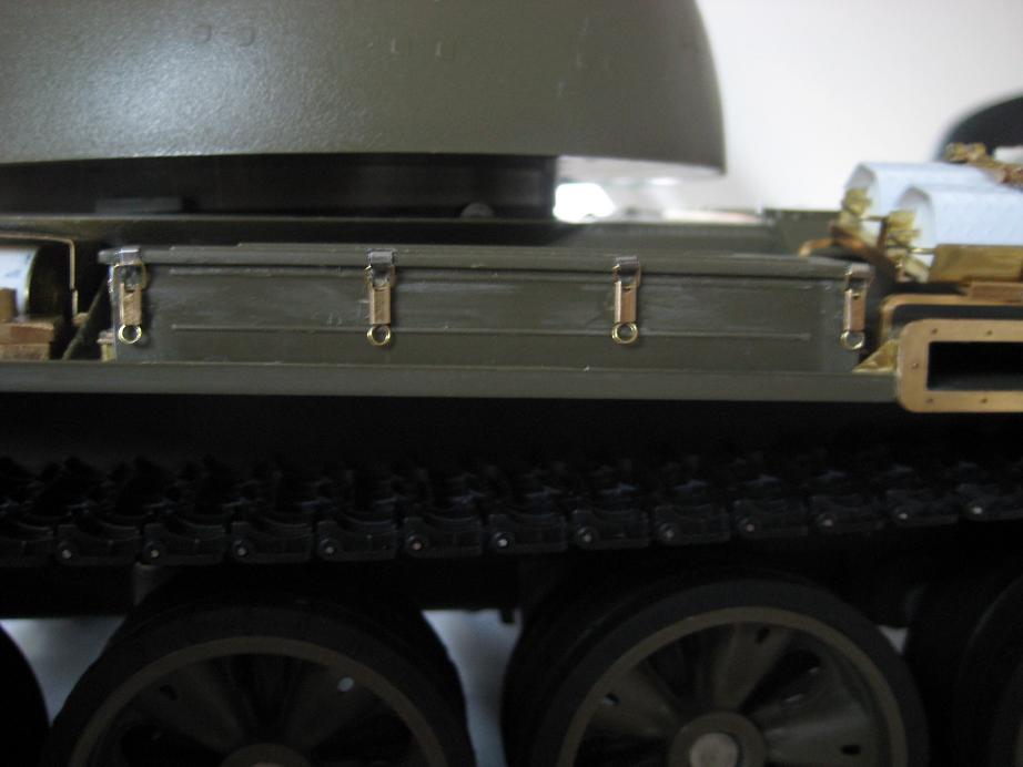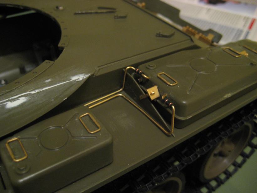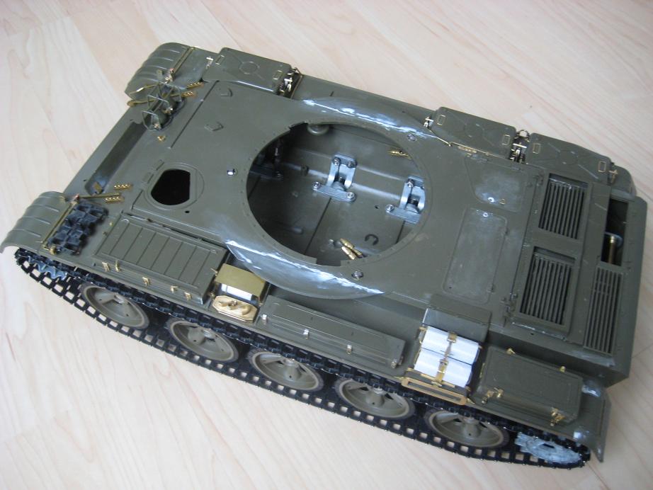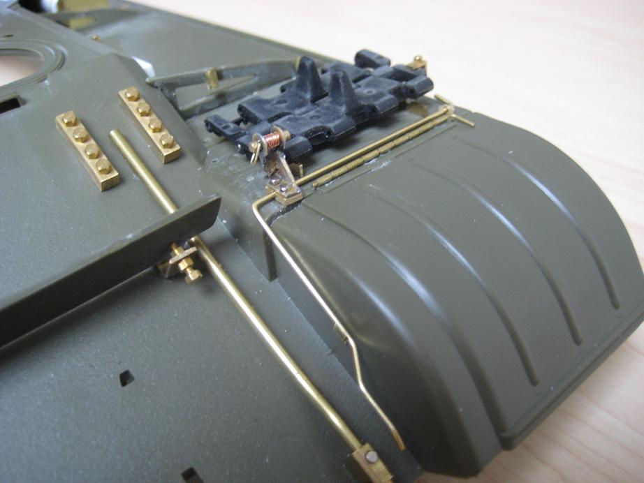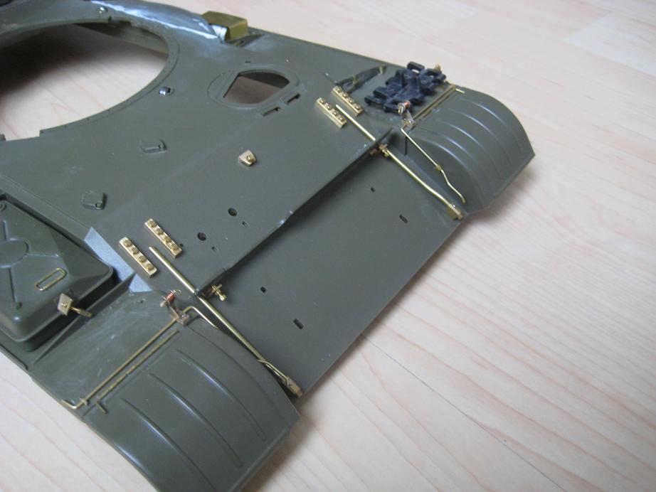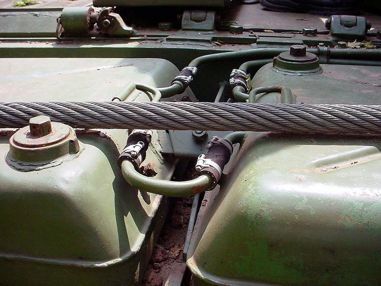 ein wenig ging es am T-55 weiter. Ich hatte mich mit den Rohrleitungen an den Tanks beschäftigt. So wie ich das sehe, gibt es je eine Dieselleitung von dem vorderen Tank und von den hinteren Tanks zum Motorraum. Dann gibt es noch eine Leitung, welche den vorderen mit den hinteren Tank verbindet. Als Vorlage hatte ich die folgenden Bilder genommen: