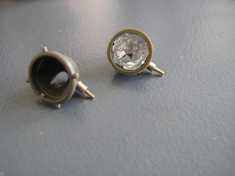 Also habe ich die Nippel von dem Scheinwerfer und dem Infrarotscheinwerfer abgeschliffen und mit neuen Halterungen versehen.