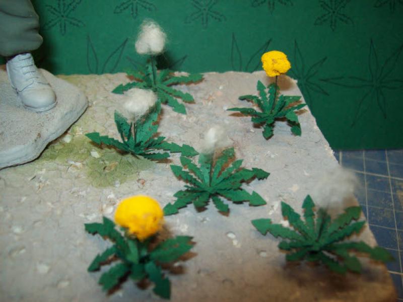 endlich gibt es einen Hersteller der evntuell Pflanzer in gröserer Stückzahl machen würde. Allerding es müssten sich einige interesenten finden damit sich die ganze Sache ein bischen lohnt. Ich habe mir mal einen Bogen mit Löwenzahn machen lassen, und Leute ich kann euch sagen die Teile sind einfach zuverarbeiten und sehen echt gut aus. Also ich habe mal einpaar von den Pflanzen zusammen gesetzt und eine Figur daneben gestellt nur mal zur ansicht, obwohl der Hersteller der Herr Schulte nur die 1:35er Pflanzen nur hochgezogen hat sehen sie eecht gut aus. Herr Schulte hat mir versichert das wenn es einige interesenten gibt wird er die Teile noch besser machen die Detailierung meint er na ja nun gut seht mal selbst.