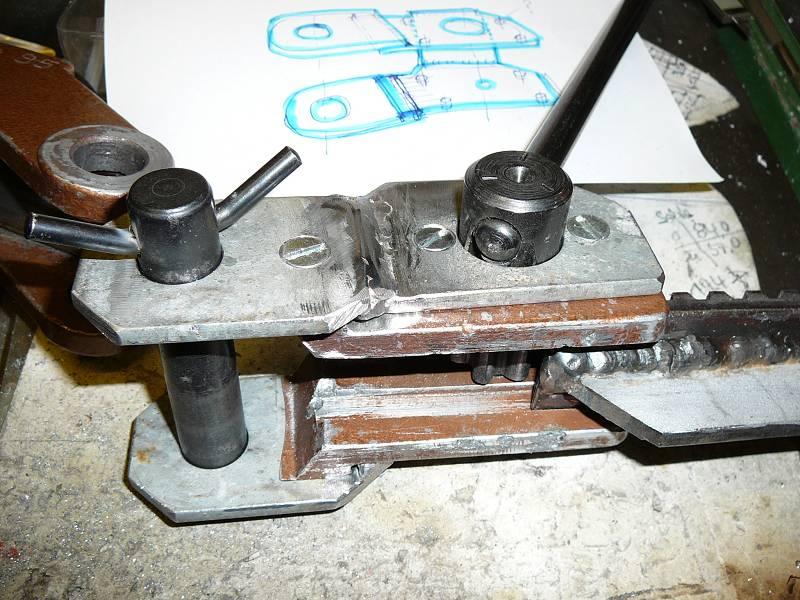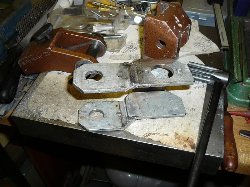 Das Aluteil mit der Führung der Zahnstange und den Lagerbohrungen des Ritzels am Handhebel war natürlich weiterhin maßgeblich für die Funktion, auch von der verstärkten Version. Die Bohrungen von Alu und Stahlteilen wurden deshalb vor dem Schweißen und dem Verschrauben deckungsgleich übereinander gebracht - einfach durch Einstecken des Ritzels. Auf diese Weise paßte auch nach dem Verschweißen alles bestens.